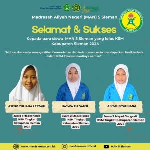 Sleman—MAN 5 Sleman mengirimkan delegasi untuk mengikuti KSM (Kompetensi Sains Madrasah) Tahun 2024 tingkat kabupaten untuk jenjang MI, MTS dab MA.