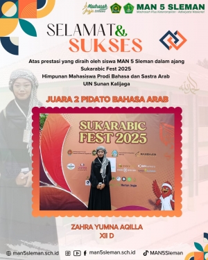 Membanggakan! Zahra Yumna Aqilla, Siswi MAN 5 Sleman Raih Juara 2 Lomba Khitobah Bahasa Arab di UIN Sunan Kalijaga