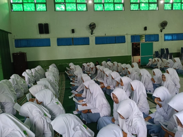Seluruh siswa kelas X mengikuti mujahadah ini dengan pendampingan guru mata pelajaran keagamaan dan wali kelas. Suasana khusyuk dan tenang menyelimuti ruangan, menandai semangat spiritualitas dan harapan agar seluruh civitas akademika diberikan kelancaran dalam belajar serta perlindungan dari berbagai kesulitan.