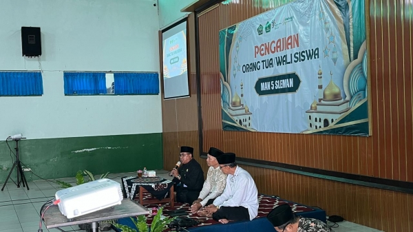 Sleman (MAN 5 Sleman) -- MAN 5 Sleman mengadakan kegiatan pengajian khusus bagi orang tua dan wali siswa kelas X, XI, dan XII pada Sabtu, 25 Oktober 2025 di aula madrasah. Kegiatan ini menghadirkan K.H. Imam Syafi'i, S.Pd., M.M sebagai penceramah utama dan diikuti dengan penuh antusias oleh para peserta.