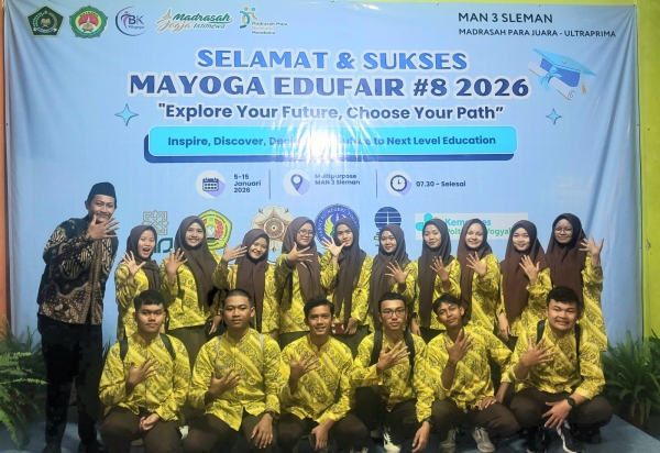 MAN 5 Sleman turut berpartisipasi dalam kegiatan Mayoga Education Fair (Mayoga Edu Fair) #8 Tahun 2026 yang diselenggarakan di MAN 3 Sleman, Kamis (15/1/2026). Kegiatan ini menjadi ajang strategis bagi siswa untuk memperoleh informasi komprehensif seputar dunia perguruan tinggi dan perencanaan studi lanjut setelah lulus dari madrasah.