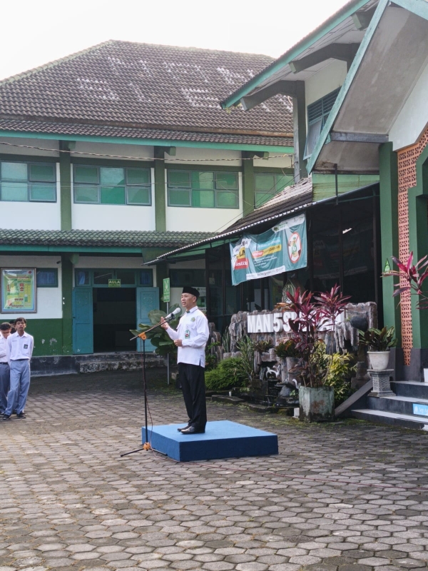 Bertindak sebagai pembina apel adalah Kepala MAN 5 Sleman, Mucharom, S.Ag., M.S.I., yang memberikan arahan strategis dan motivasi mendalam bagi para siswa.