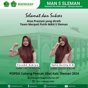 Sleman (MAN 5 Sleman) – Tim Merpati Putih MAN 5 Sleman menorehkan prestasi gemilang dalam ajang POPDA Sleman Cabang Pencak Silat.