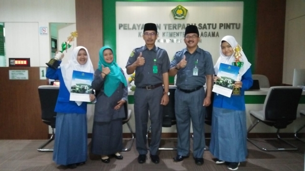 Sleman (MAN 5 Sleman) – Para juara Kompetisi Sains Madrasah (KSM) Tingkat Kabupaten Sleman Tahun 2019 diundang pada apel pagi, Senin (29/7) di Kementerian Agama Kabupaten Sleman untuk menerima Piala dan Sertifikat atas prestasi yang diraihnya. Piala diserahkan oleh Plh. Kepala Kantor Kementerian Agama Kabupaten Sleman H. Sidik Pramono, S.Ag, M.Si didampingi Plh. Kasi PAIS Drs. H. Suharto. Para juara berhak melaju Pada KSM Tingkat Pripinsi DIY yang akan dilaksanakan pada pertengahan bulan Agustus mendatang. Kompetisi Sains Madrasah (KSM) merupakan salah satu olimpiade sains yang bergengsi karena diikuti oleh seluruh perwakilan dari tingkat MI, MTs dan MA baik negeri maupun swasta di se-Kabupaten Sleman.