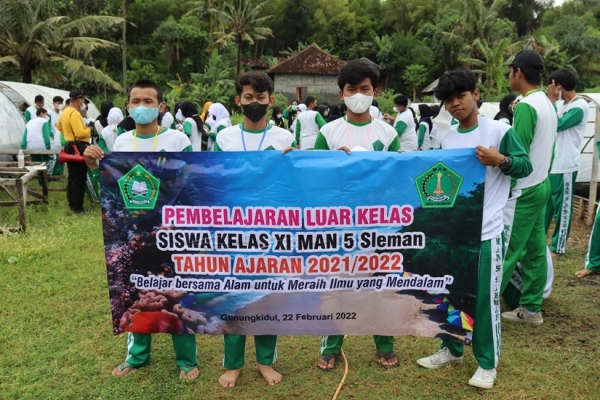 MAN 5 Sleman melaksanakan kegiatan Outing Class yang diikuti oleh 195 siswa kelas XI. dengan mengusung tema “Belajar Bersama Alam Untuk Meraih Ilmu yang Mendalam”. Kegiatan ini dilaksanakan pada Selasa, (22/2) di Pantai Sepanjang dan Pantai Drini serta mengunjungi Kelompok Garam Tirta Bahari Gunung Kidul.