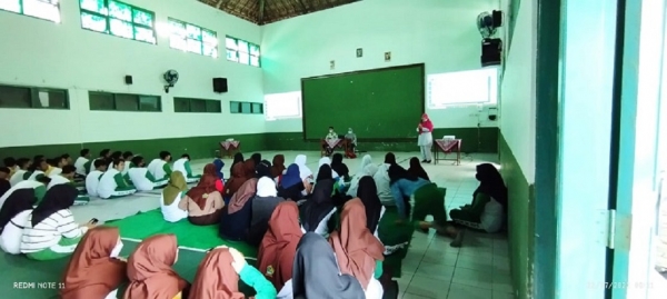 Siti Sumaryati, SKM, narasumber dari Puskesmas tempel menjelaskan akan pentingnya menjaga kesehatan di lingkungan madrasah. “Jadi menjaga kesehatan di lingkungan madrasah itu dilakukan oleh kita dan kembali untuk kita juga, kitalah yang menjadi peran utama untk menciptakan madrasah sehat supaya semua kegiatan terasa nyaman dan kondusif”, ungkap Siti Sumaryanti, SKM di hadapan siswa.