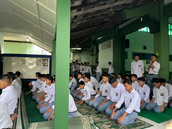 Sebelum berhadapan dengan perangkat digital untuk ujian, para siswa berkumpul di Aula dan Mushola madrasah untuk melaksanakan Sholat Dhuha serta doa bersama.