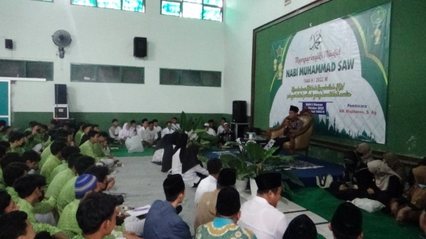 Peringatan Maulid Nabi ini menghadirkan penceramah, KH. Mujiharno, S.Ag dari Kandangan, Sukoharjo, Ngaglik, Sleman. Dalam tausiahnya yang berjudul "Kunci kesuksesan dengan Meneladi Nabi Muhammad saw”. Dalam ceramahnya mengajak para siswa untuk sama-sama bershalawat dan melantunkan pujian kepada Rasulullah SAW. Pertama, harus menjadi pribadi yang cerdas dan pintar tidak mudah dibodohi orang lain. Kedua, Punya Cita cita yang setinggi langgit, supaya kalau jatuh pun masih berada di antara bintag-bintang maksudnya masih dalam lingkungan dan profesi yang membawa keberkahan. Ketiga, Tahan uji. Menjadi muslim harus tangguh dan pantang mengeluh. Keempat, Sangu/ Biaya. Alhamdulillah orang tua kita meskipun terkadang kekurang ekonomi tetap memprioritaskan biaya pendidikan untuk kesuksesan anak-anaknya. Kelima, takdim kepada Bapak/ ibu guru. Bagaimanapun sepintar dan sesukses apapun kalian jika tidak hormat pada Bapak Ibu guru itu semua tidak bernilai. Keenam, Waktunya panjang jadi butuh kesabaran. (Nk)