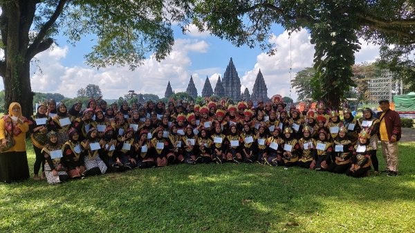 Sleman -- Madrasah Aliyah Negeri (MAN) 5 Sleman yang beralamat di Jl. Magelang Km 17 Ngosit, Margorejo, Tempel, Sleman mengikuti pagelaran Jogja Menari II 2022 dengan menerjunkan personil sebanyak 90 siswa di Lapangan Siwa, Candi Prambanan pada Minggu 18/12/2022.